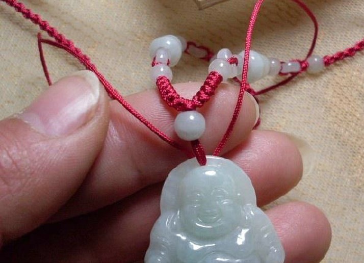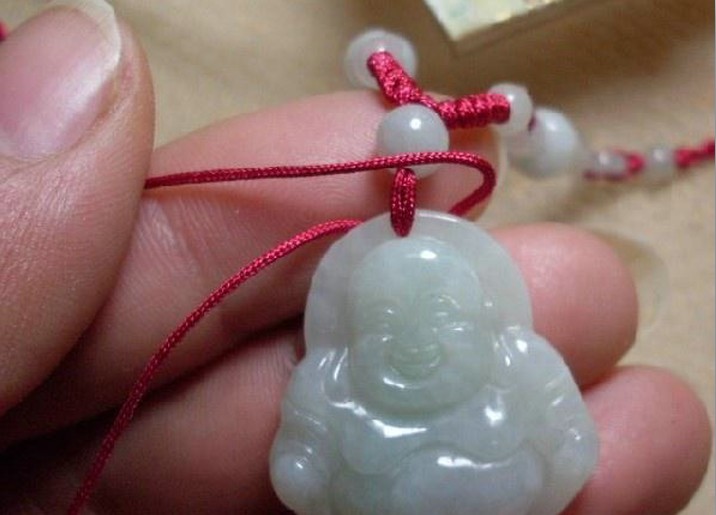 以绳配加各种材质的圆珠,也是常见的节艺方法,行家称之为;节珠;。玛瑙节珠,有红色、黑色、白色等很多颜色,透明度好,价格便宜,但档次较低,适合中低档翠佩。珊瑚节珠,颜色鲜艳,透明度差,适合与颜色绿、种水普通(透明度较差)的中高档翡翠相佩。红翡、黄翡节珠,透明度一般,颜色不够鲜艳,档次不高,适合与绿色不多、不艳的中低档翡翠相配。